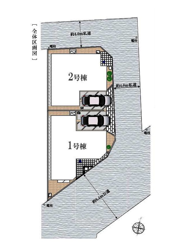 | 駐車場 | 1台 | 道路の幅員 | 1号棟:南8.4m 東4m |