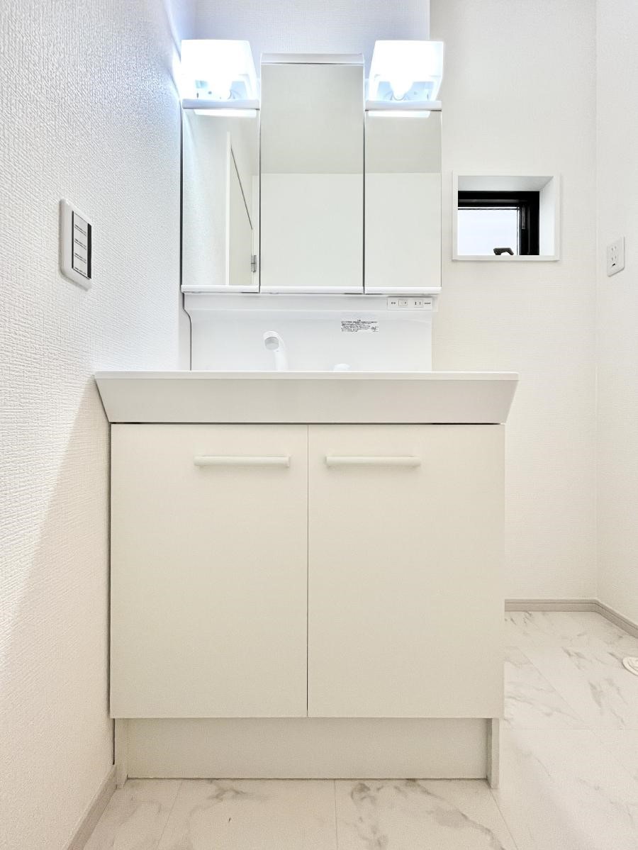 三面鏡の裏に、化粧品や衛生用品などを収納...