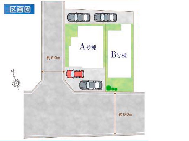 | 駐車場 | 2台 | 道路の幅員 | A号棟:西5m |