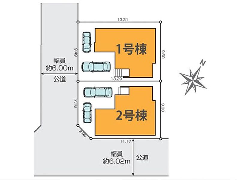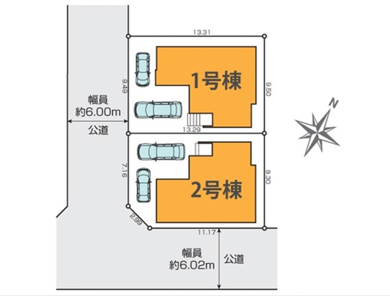 | 駐車場 | 2台 | 道路の幅員 | 1号棟:南西6m /2号棟:南西6m 南東6m |