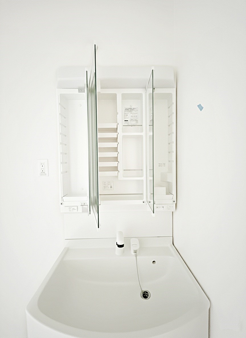◆B号棟◆三面鏡の裏に、化粧品や衛生用品...