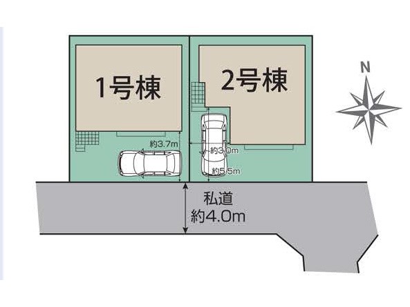 | 駐車場 | 1台 | 道路の幅員 | 1号棟:南4m /2号棟:南4m |