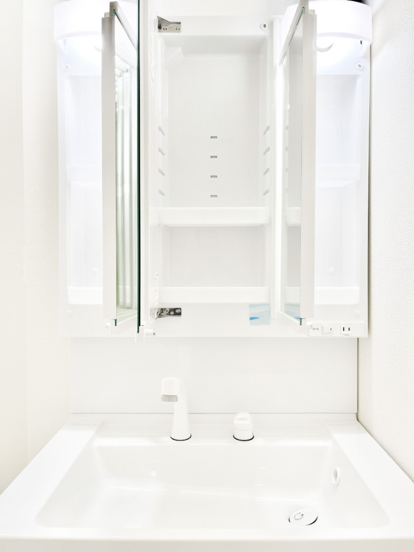 ◆A号棟◆三面鏡の裏に、化粧品や衛生用品...