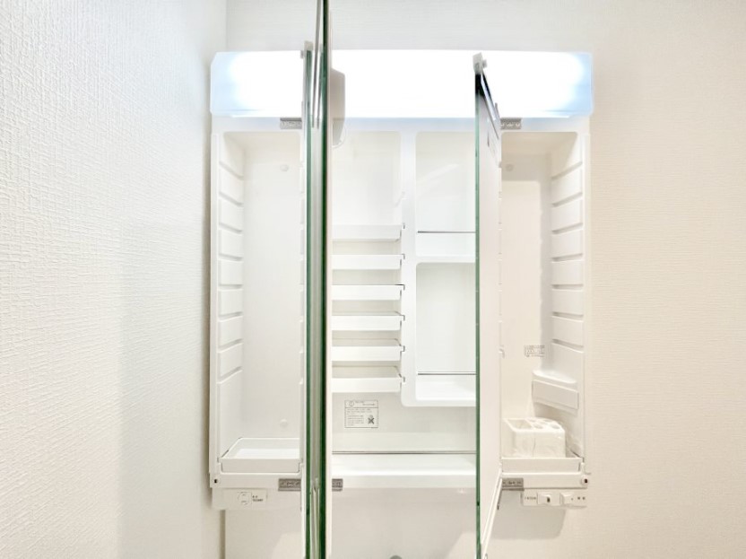 ◆1号棟◆三面鏡の裏に、化粧品や衛生用品...