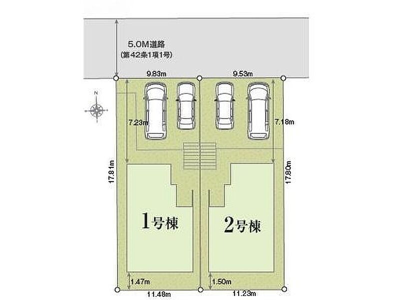 | 駐車場 | 2台(車種による) | 道路の幅員 | 道路幅:5m、アスファルト舗装、一方 : 北 5.0m 公道 |