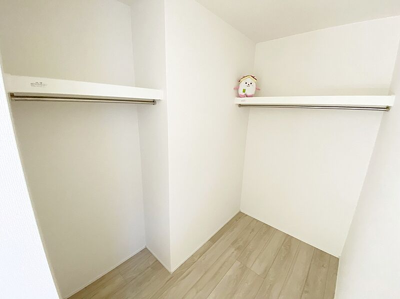 お子様との思い出もたっぷりしまえるウォークインクローゼット。衣類だけでなく、鞄などの小物からスーツケースやレジャー用品などの大きな物までたっぷり収納出来ます。