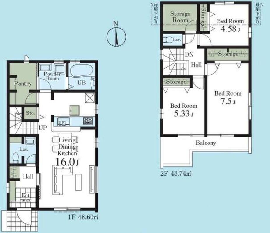 | 建物面積 | 92.34m2・103.27m2 | 土地面積 | 125.04m2・139.94m2 |