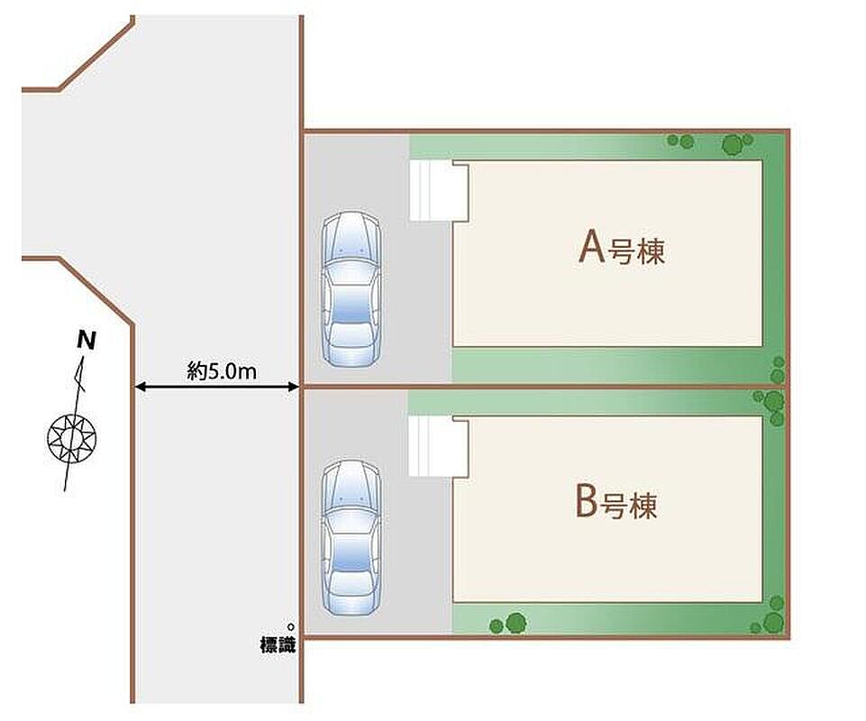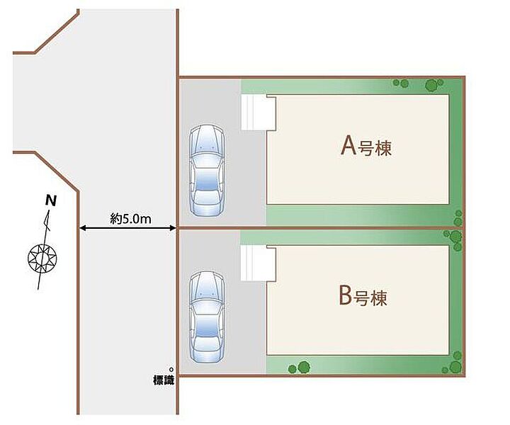| 駐車場 | 1台 | 道路の幅員 | 道路幅:5m、アスファルト舗装、西側約5.0m公道 |
