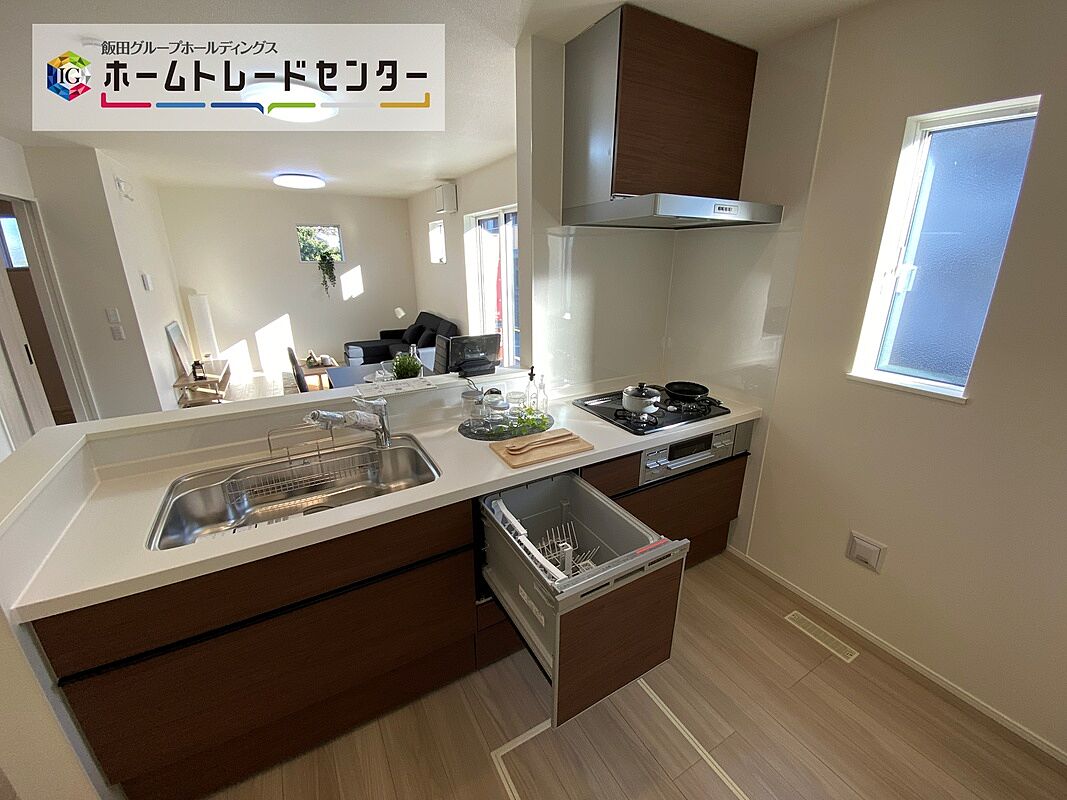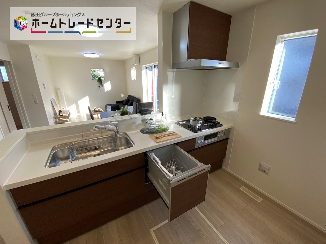 忙しい奥様の味方、後片付けもラクラクなビルトイン食洗機付き。洗い終わった食器の水切りや乾燥としても便利です。