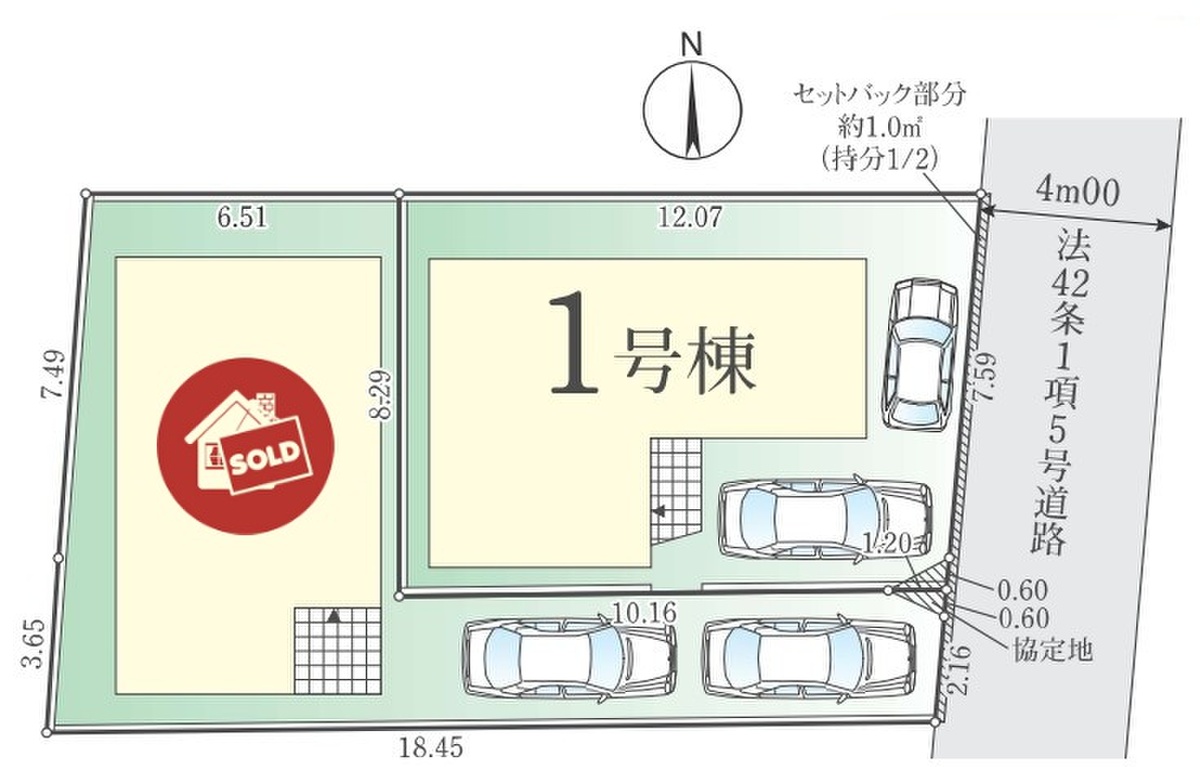 | 駐車場 | 2台(車種による) | 道路の幅員 | 道路幅:4m、アスファルト舗装、東側幅員4.0m私道 |
