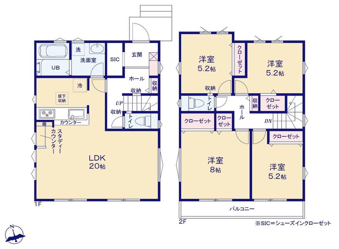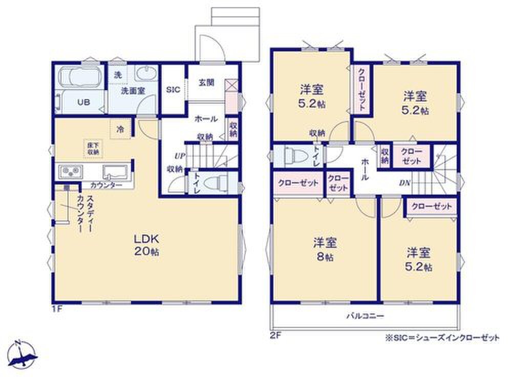 □カースペース2台!全棟20帖のLDK!SIC・WICなど収納も充実!□