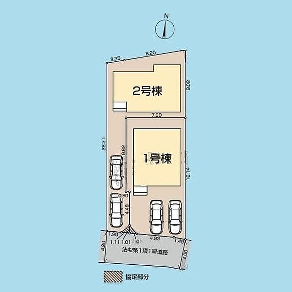 | 駐車場 | 2台 | 道路の幅員 | 道路幅:4m、アスファルト舗装、南側4m公道 |