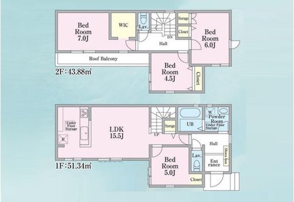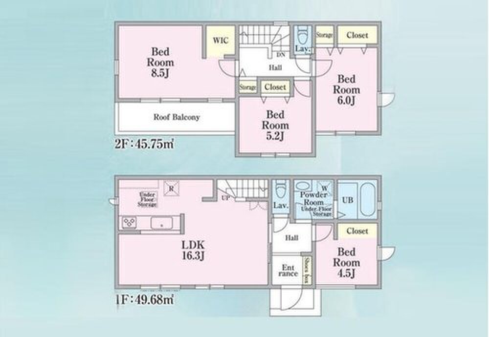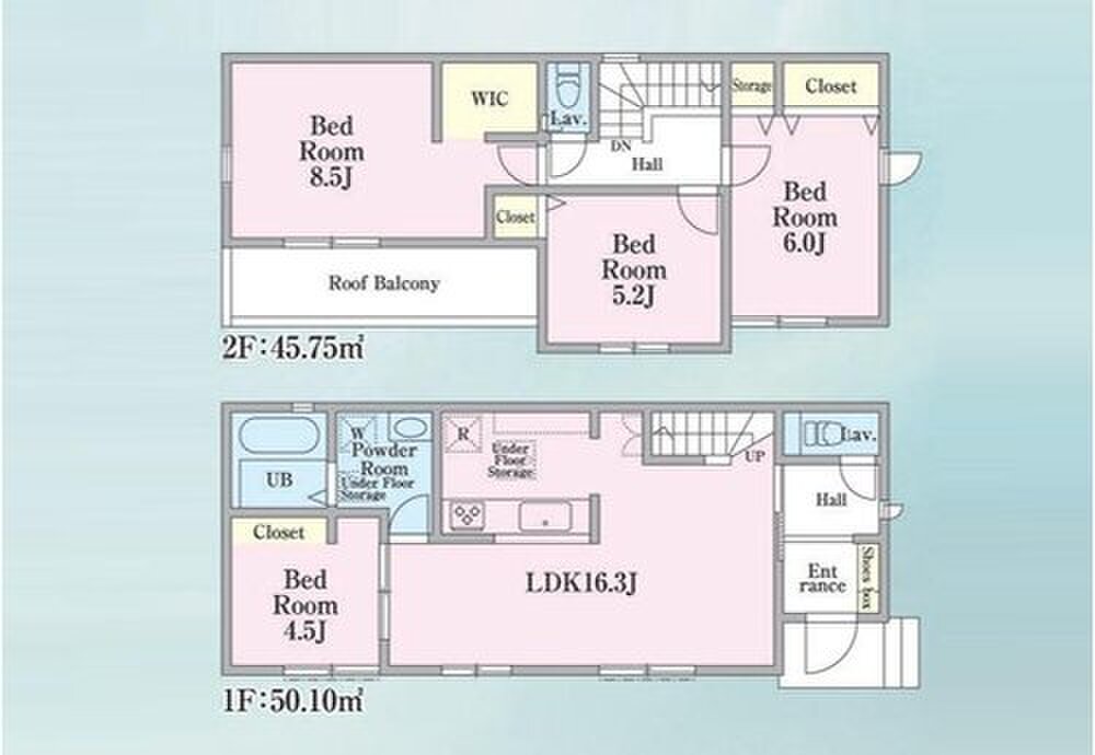 | 建物面積 | 95.22m2~95.85m2 | 土地面積 | 147.41m2・150.1m2 |