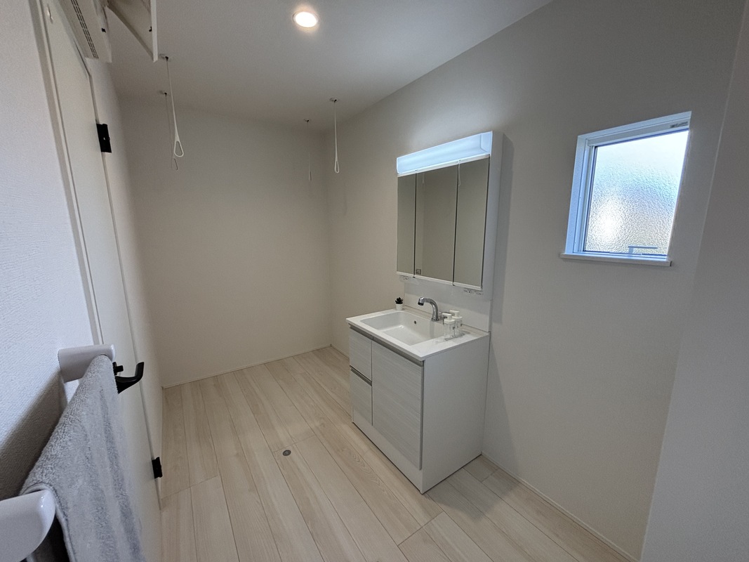 ・洗面所には吊り下げ物干し付きの「ランドリースペース」完備