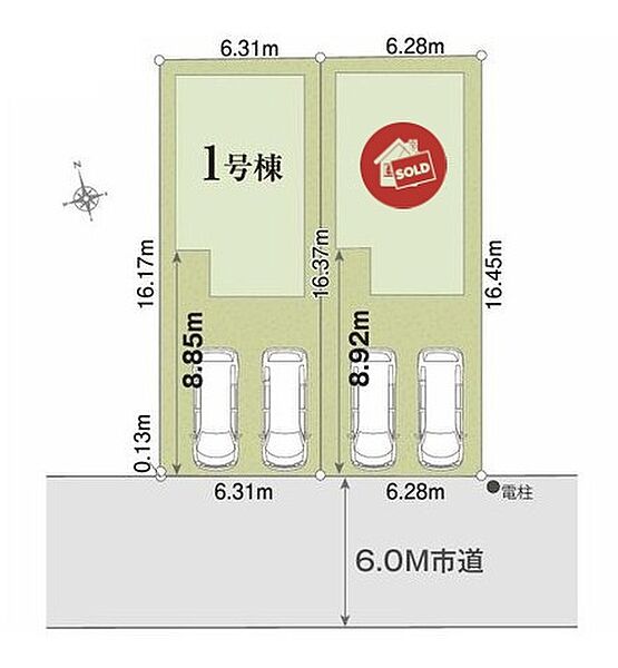 | 駐車場 | 2台 | 道路の幅員 | 道路幅:6m、アスファルト舗装、南側6.0m公道 |