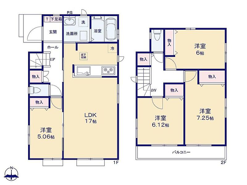 E号棟 間取り 4LDK 価格 3790万円 建物面積 98.95m2 土地面積 131.46m2 -