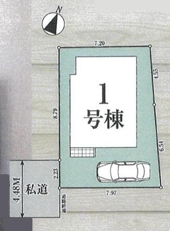 | 駐車場 | 1台 | 道路の幅員 | 道路幅:4.4m、アスファルト舗装、西側4.48m私道 |