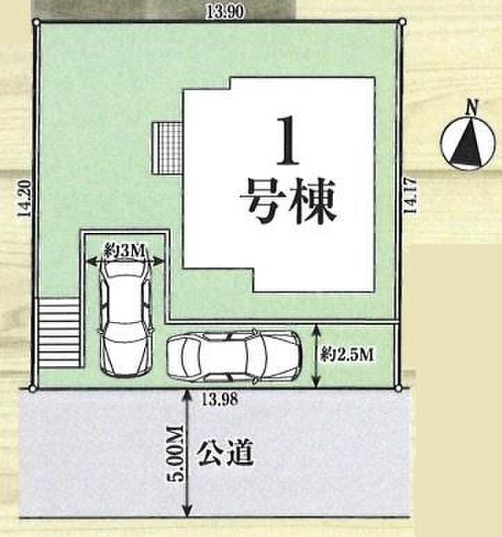 | 駐車場 | 2台 | 道路の幅員 | 道路幅:5m、アスファルト舗装、南側5.0m公道 |