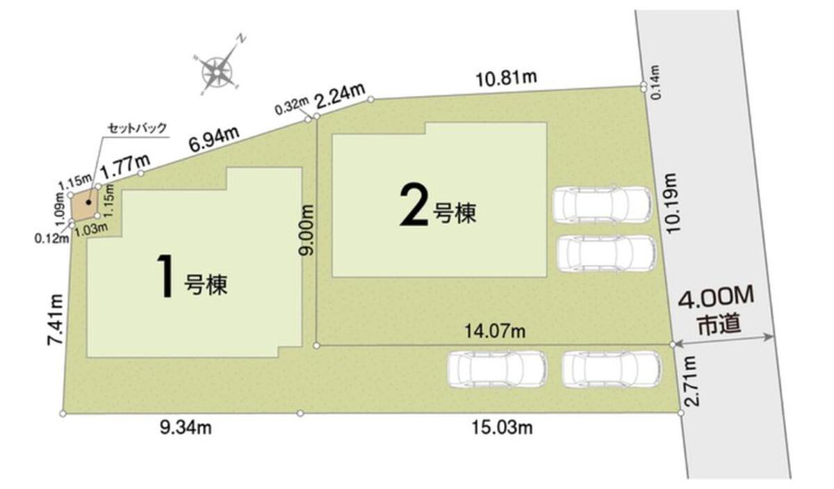 | 駐車場 | 2台 | 道路の幅員 | 道路幅:4m、アスファルト舗装、東側4.0m市道 |