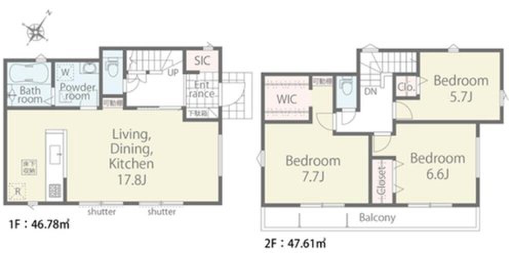 | 建物面積 | 93.97m2・94.39m2 | 土地面積 | 133.4m2・136.55m2 |