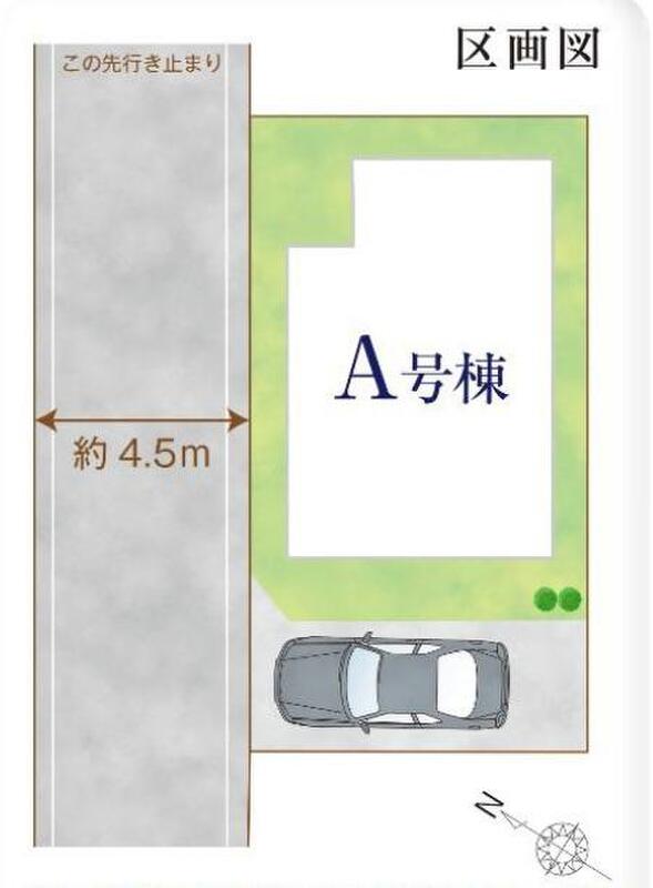 | 駐車場 | 1台 | 道路の幅員 | 道路幅:4.5m、アスファルト舗装、西側4.5m私道 ※私道持分:147m2の内、22.95199m |