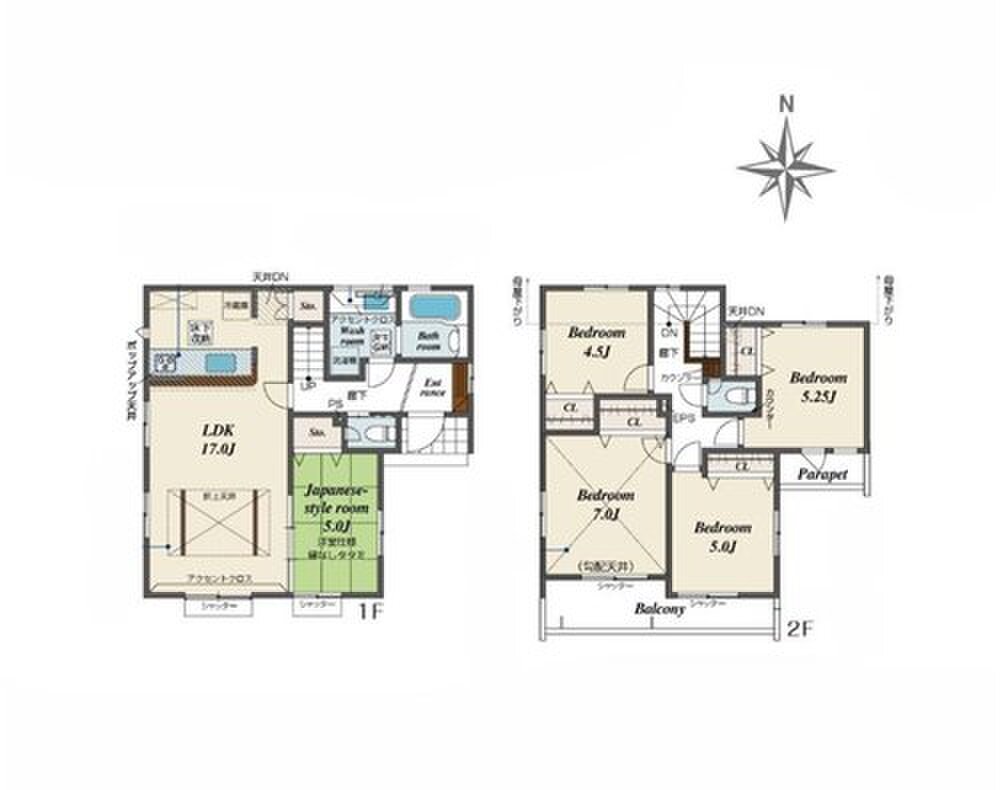 | 間取り | 5LDK | 建物構造 | 木造サイディング造アスファルトシングル葺2階建 |
