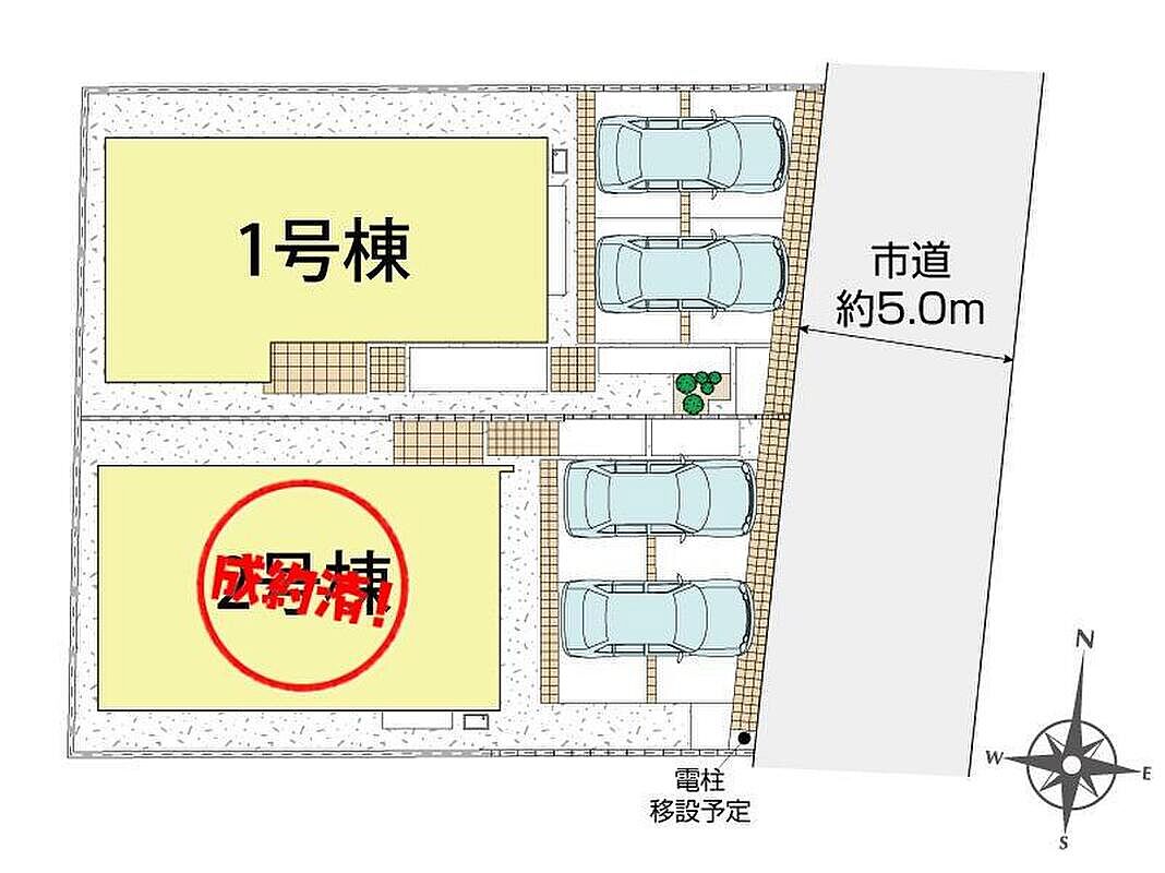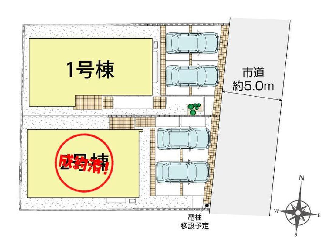 | 駐車場 | 2台 | 道路の幅員 | 道路幅:5m、アスファルト舗装、東 5m 公道 |