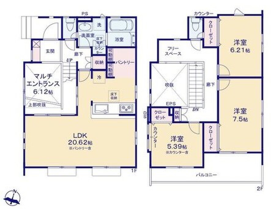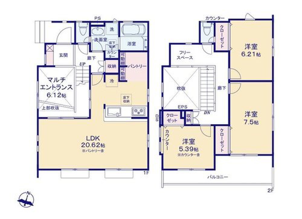 2号棟 間取り 5LDK+S 価格 3710万円 建物面積 107.58m2 土地面積 151.01m2 -