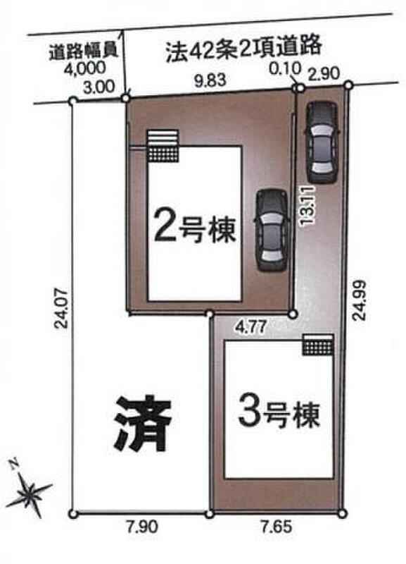 | 駐車場 | 1台 | 道路の幅員 | 道路幅:3.8m、アスファルト舗装、北3.8m 公道 |