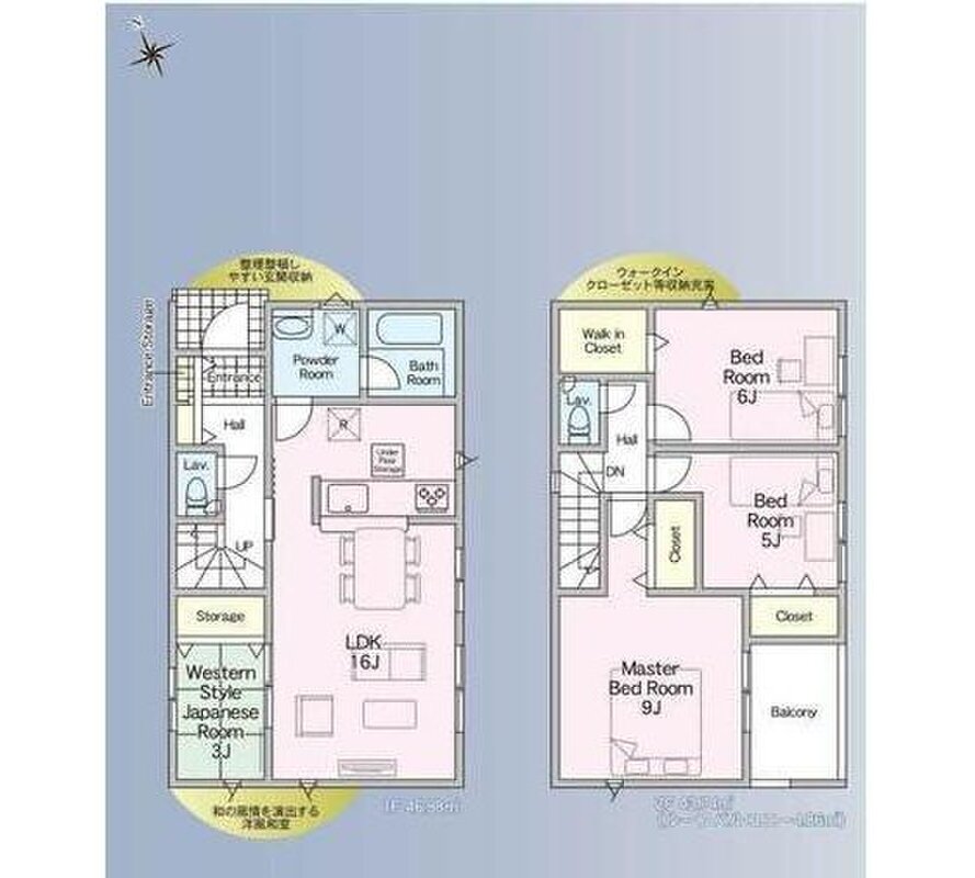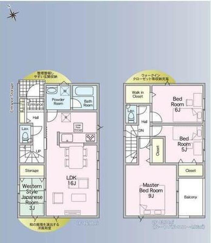 | 建物面積 | 90.72m2・93.15m2 | 土地面積 | 125.06m2・130.04m2 |
