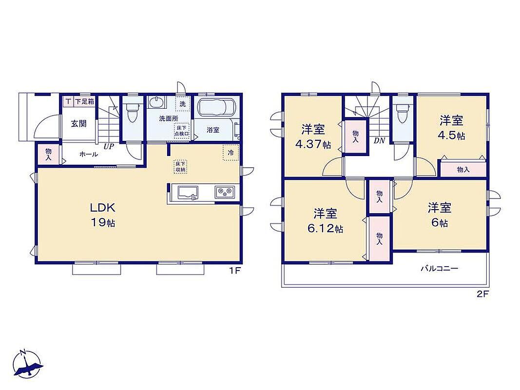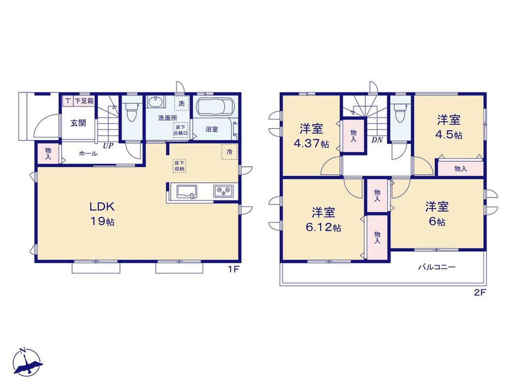 | 間取り | 4LDK | 建物構造 | 木造サイディング貼アスファルトシングル葺2階建 |