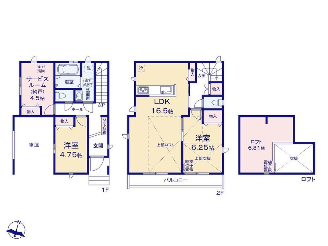 | 間取り | 2LDK+S(納戸) | 建物構造 | 木造サイディング貼アスファルトシングル葺2階建て |