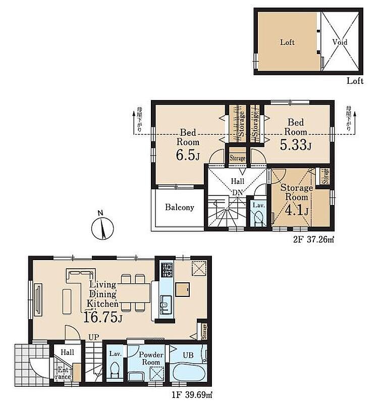 | 間取り | 2LDK+S(納戸)・3LDK | 建物構造 | 木造在来軸組工法2階建(900モジュール) |