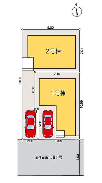 | 駐車場 | 1台 | 道路の幅員 | 道路幅:6m、アスファルト舗装、南 6m 公道 |