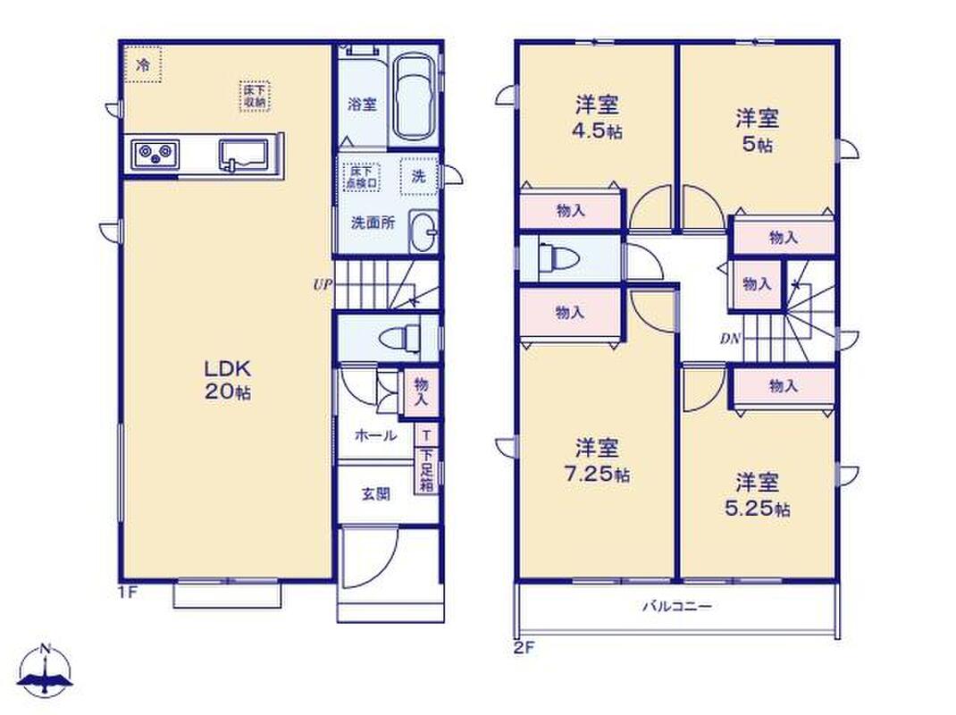 | 間取り | 4LDK・4LDK+S(納戸) | 建物構造 | 木造サイディング貼アスファルトシングル葺2階建 |