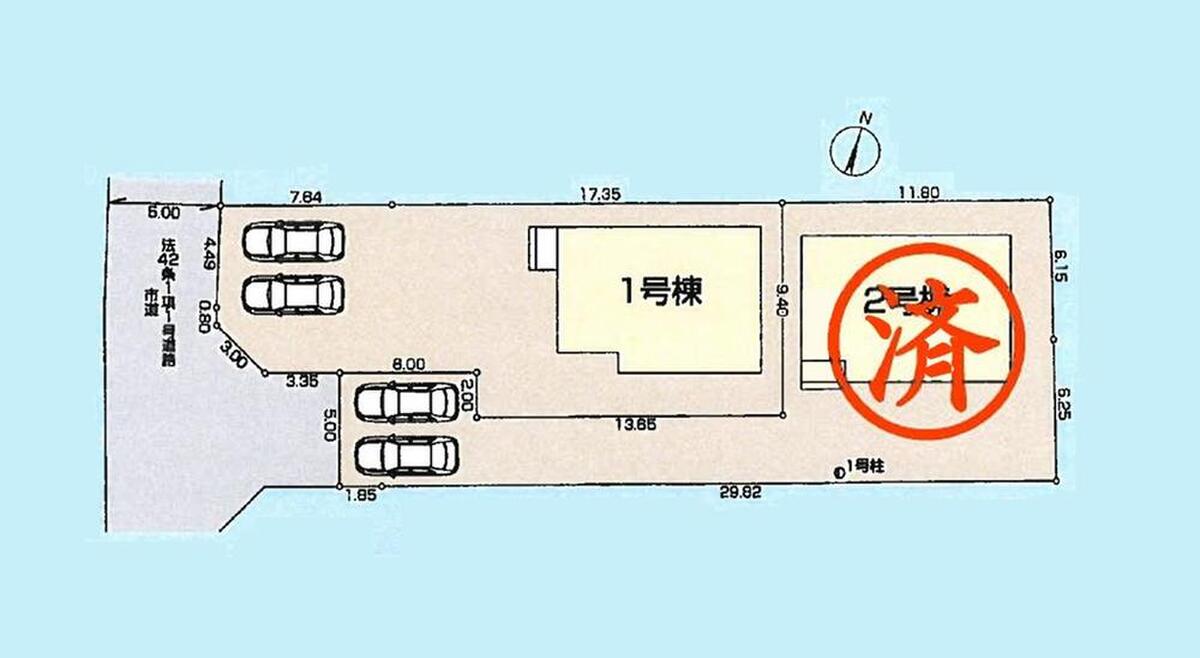 | 駐車場 | 2台(※車種による) | 道路の幅員 | 道路幅:5m、アスファルト舗装、西側約5m公道 |