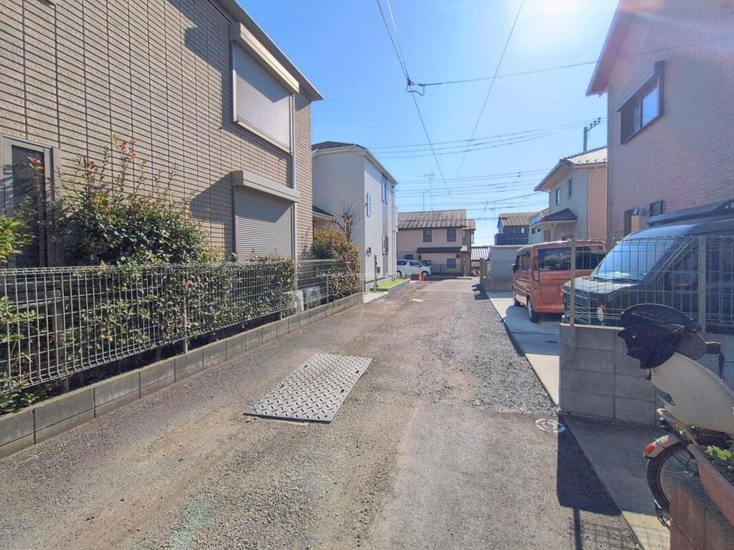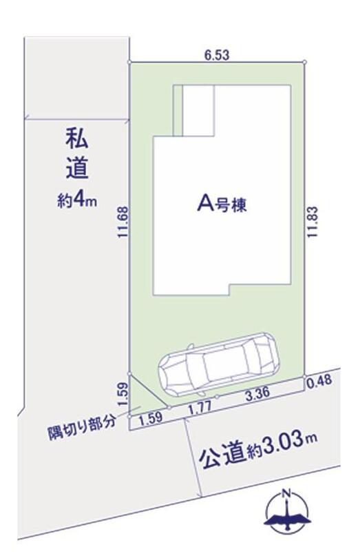 | 駐車場 | 1台 | 道路の幅員 | 道路幅:3.5m・4m、アスファルト舗装、二方 : 西側 4m 私道、南側 3.51m 公道 |