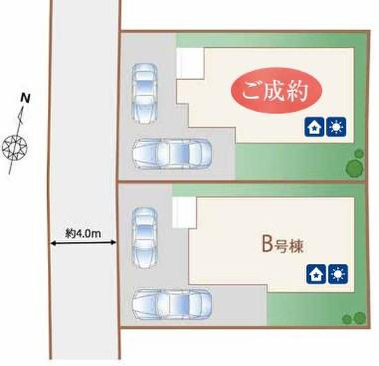 | 駐車場 | 2台(※車種による) | 道路の幅員 | 道路幅:4m、アスファルト舗装、西側約4.0m私道 |
