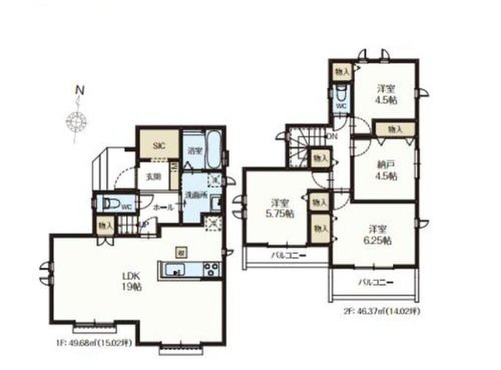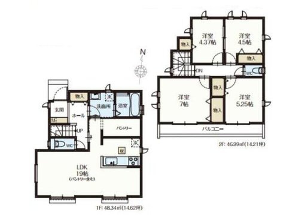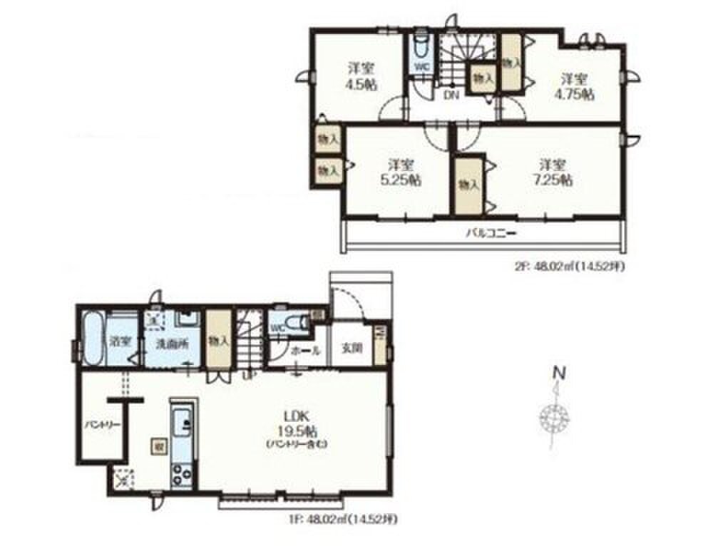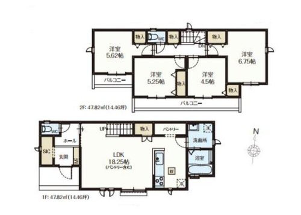 N号棟 間取り 4LDK 価格 4790万円 建物面積 96.04m2 土地面積 162.17m2