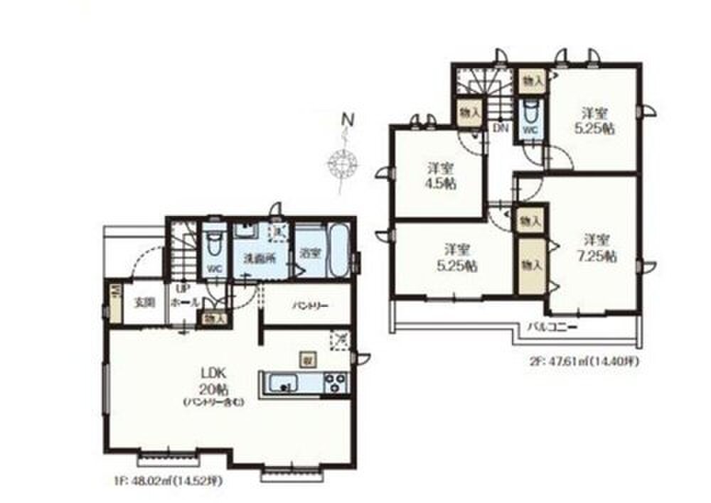 J号棟 間取り 4LDK 価格 4790万円 建物面積 95.64m2 土地面積 160.48m2 -