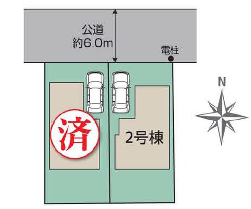 | 駐車場 | 1台 | 道路の幅員 | 道路幅:6m、アスファルト舗装、北側 6.0m 公道 |