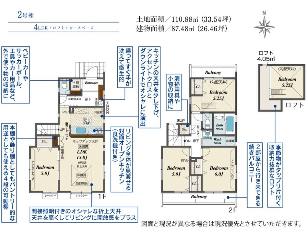 | 建物面積 | 87.48m2 | 土地面積 | 110.88m2 |