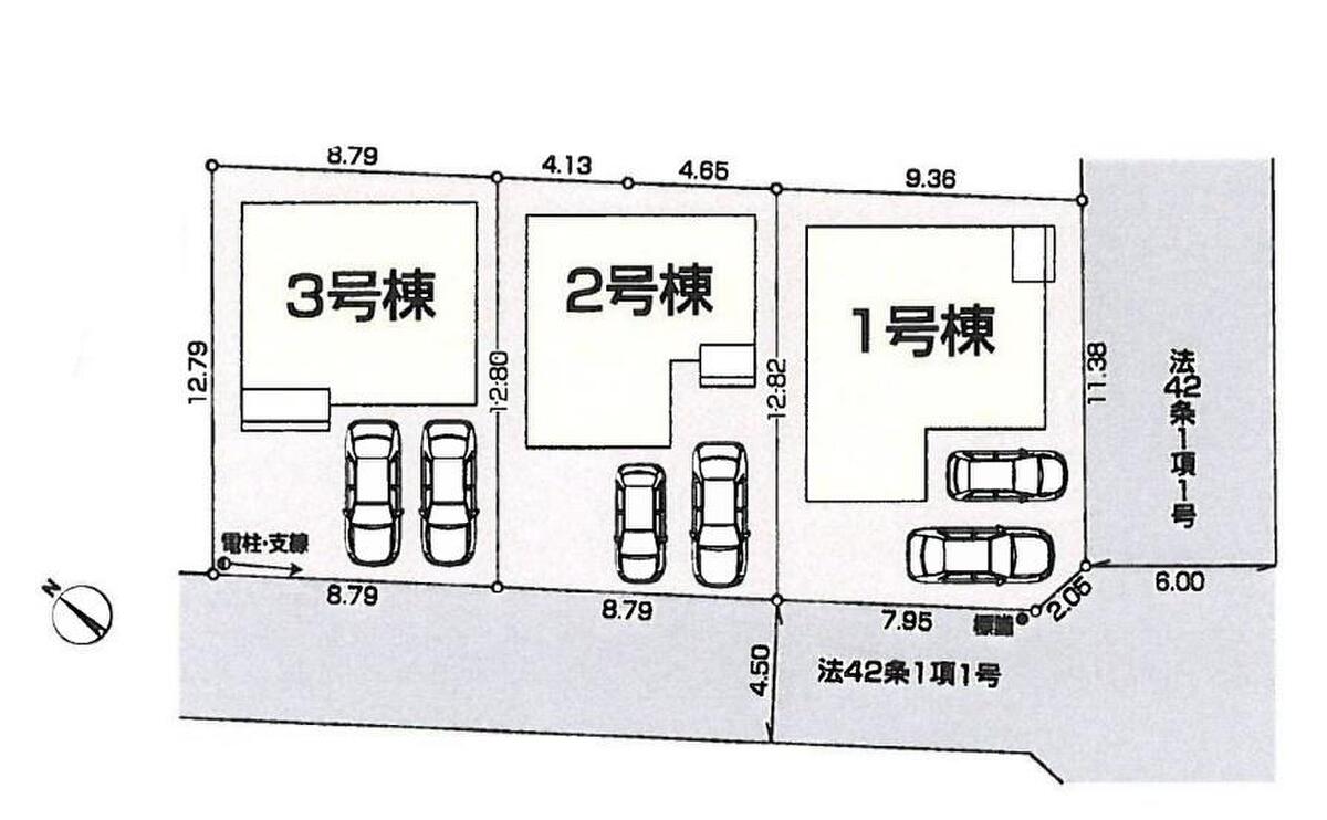 | 駐車場 | 2台(※車種による) | 道路の幅員 | 道路幅:4.5m・6m、アスファルト舗装、南東側6m公道・南西側4.5m公道 |