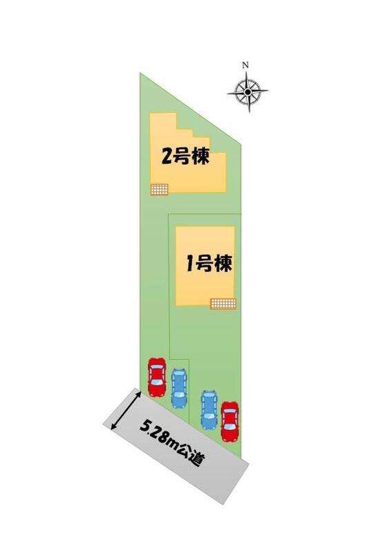 | 駐車場 | 2台(車種による) | 道路の幅員 | 道路幅:5.2m、アスファルト舗装、南側5.28m公道 |