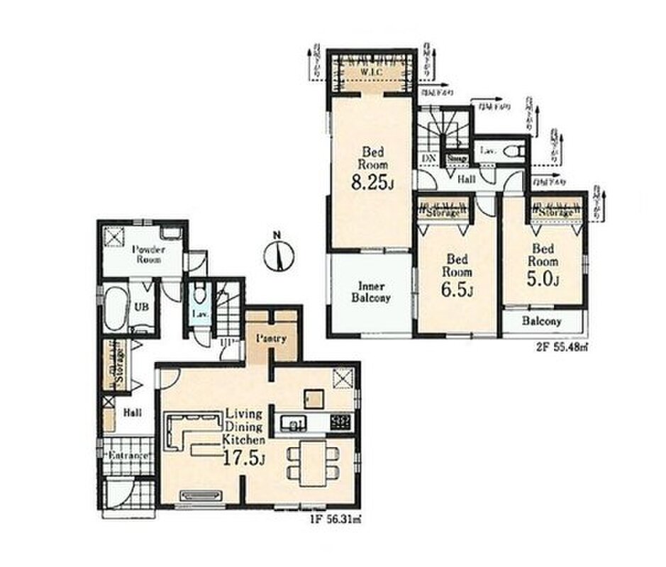 | 建物面積 | 104.33m2・111.79m2 | 土地面積 | 180.76m2・209.54m2 |