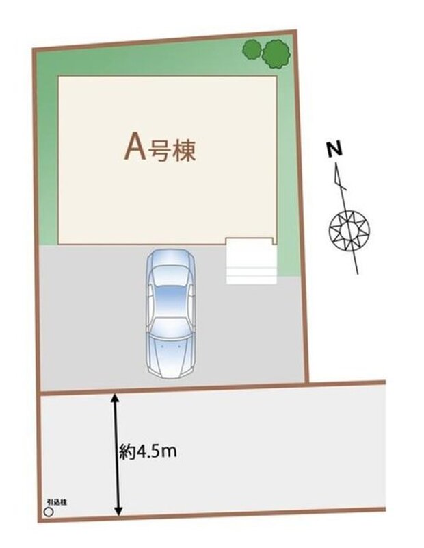 | 駐車場 | 1台 | 道路の幅員 | 道路幅:4m、アスファルト舗装、一方 : 南側 4.5m 私道 |
