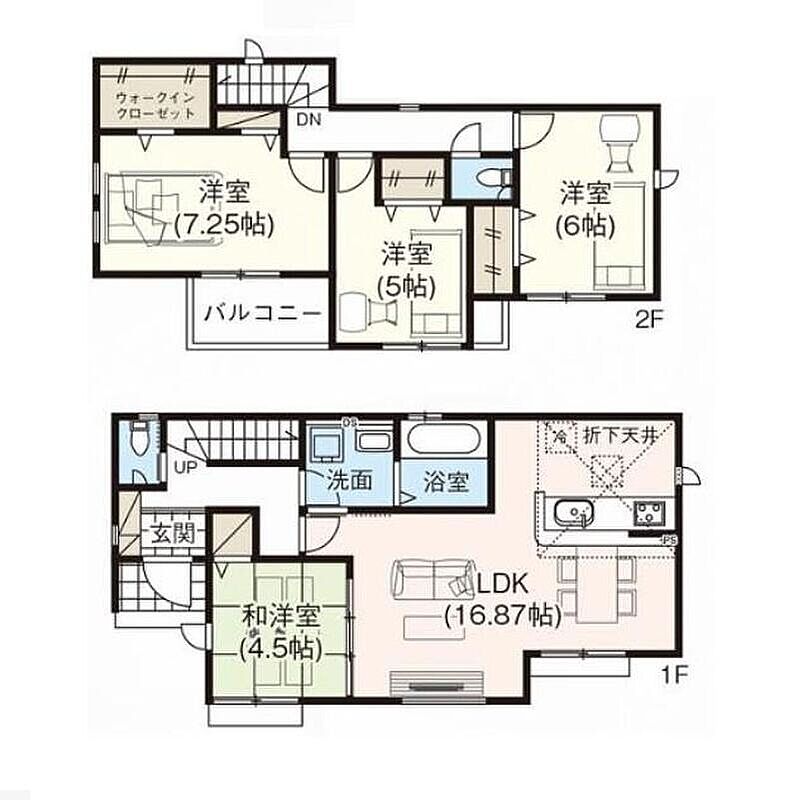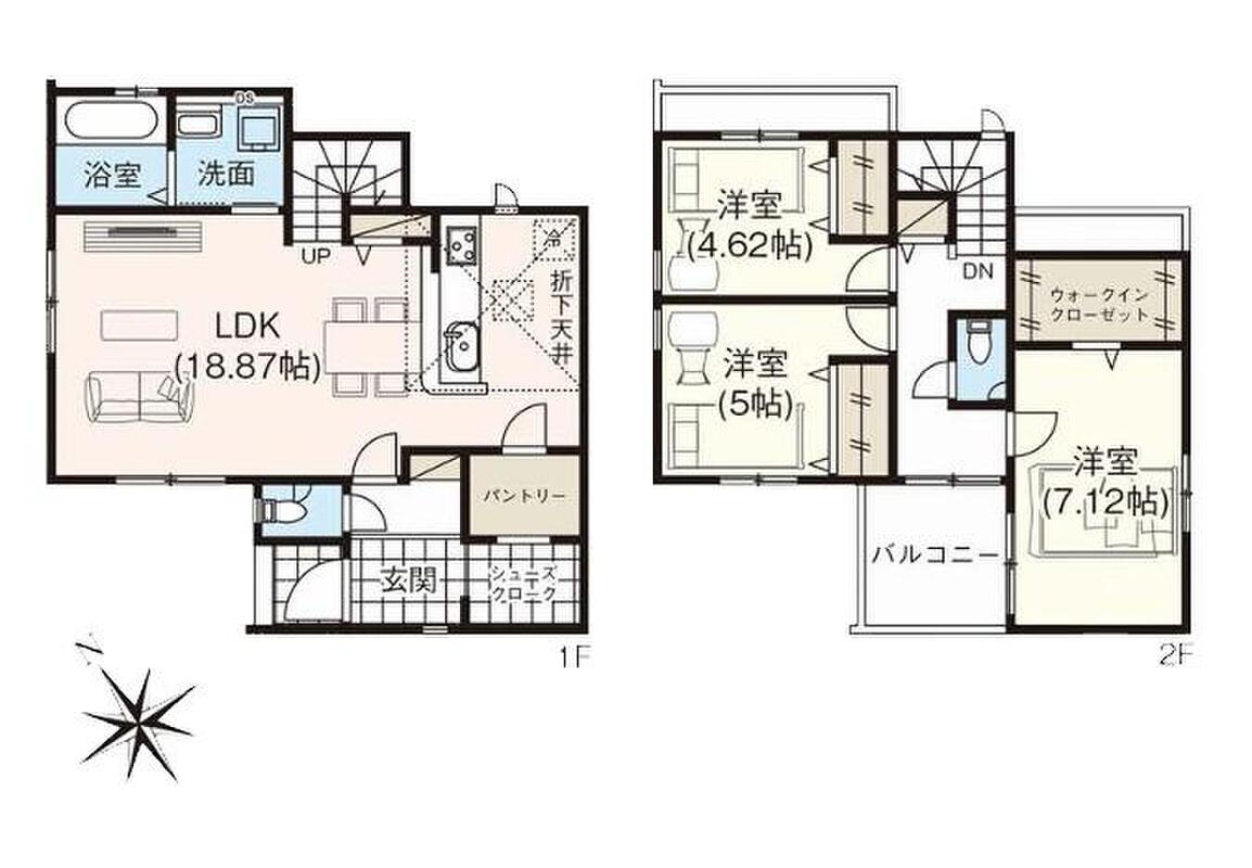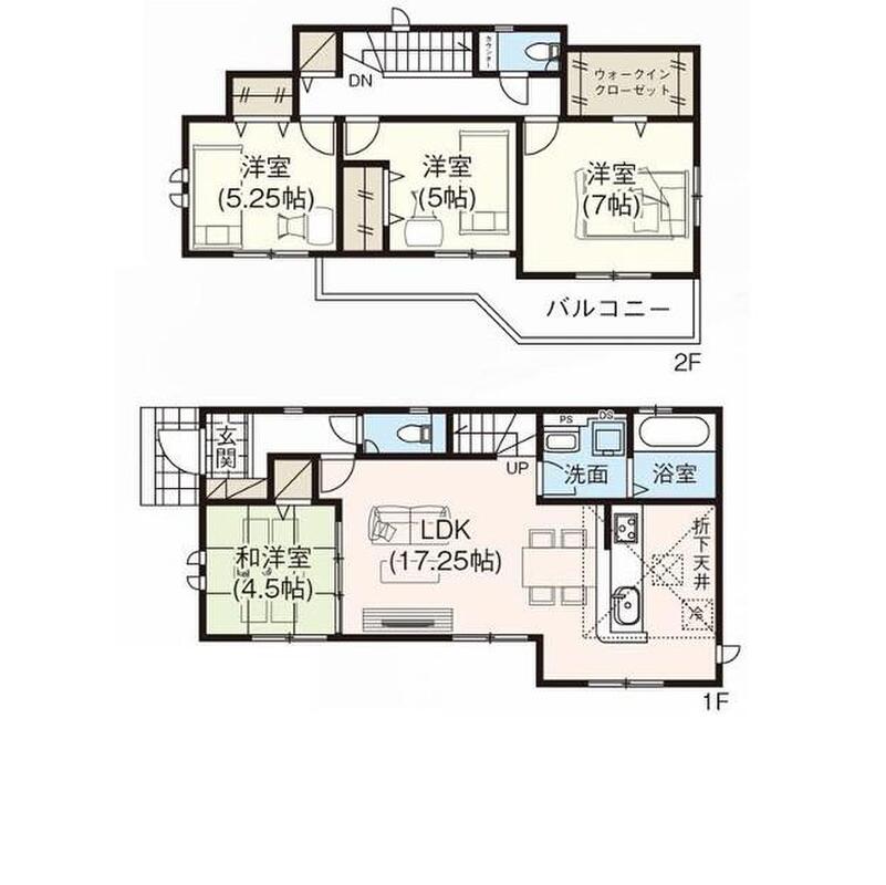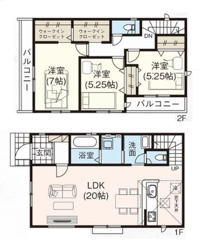 | 建物面積 | 95.84m2~96.26m2 | 土地面積 | 120.13m2・120.14m2 |