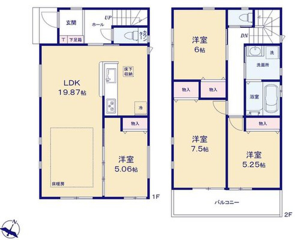 | 建物面積 | 100.19m2・109.3m2 | 土地面積 | 81.28m2・83.91m2 |