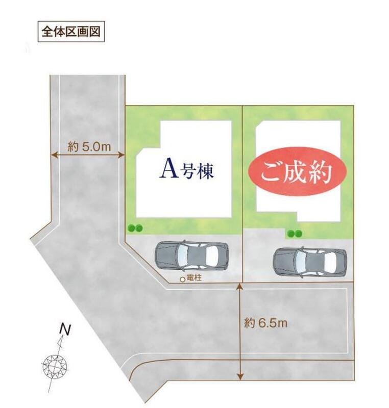 | 駐車場 | 1台 | 道路の幅員 | 道路幅:5m~6.5m、アスファルト舗装、西側約5m、南側約6.5m公道 |