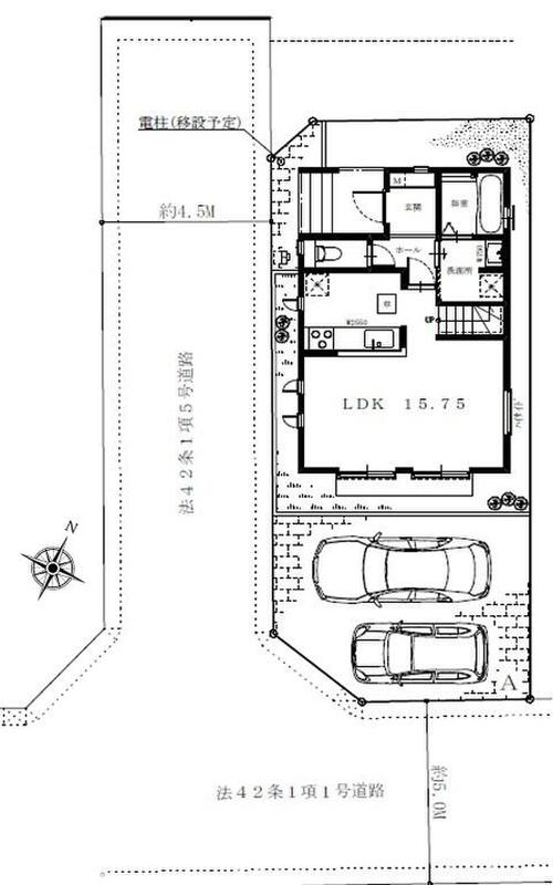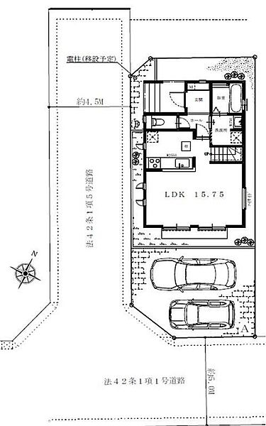 | 駐車場 | 2台(車種による) | 道路の幅員 | 道路幅:4.5m・5m、アスファルト舗装、西側 4.5m 私道 南側5m 公道 |